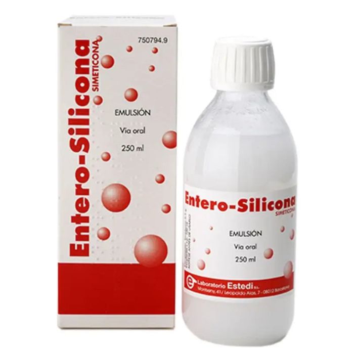 El principio activo de Entero Silicona es la simeticona. Cada ml de emulsión oral contiene 9 mg de simeticona.Los demás excipientes son: carmelosa sódica (E-466), sacarina sódica (E-954), parahidroxibenzoato de metilo (E-218), alcohol polivinílico, esencia de anís (etanol al 96 por ciento y propilenglicol) y agua purificada.