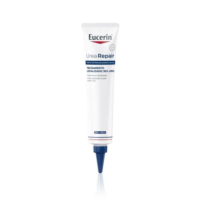 Aplica Eucerin UreaRepair Tratamiento Localizado 30 % Urea una o dos veces al día en zonas localizadas de piel seca, áspera, gruesa y descamada de codos, pies, manos y rodillas.