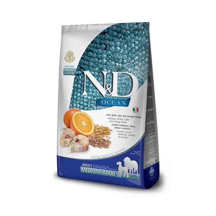 Farmina N&D Dog Ocean Low Grain Medium Maxi Bacalao 12Kg, pienso para perros