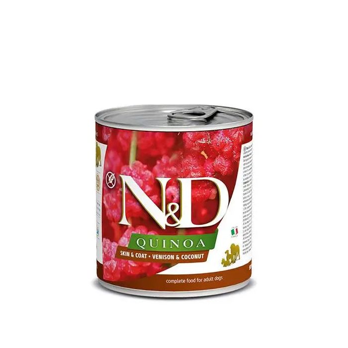 Farmina N&D Dog Quinoa Skin Coat Venado Caja 6X285Gr, comida húmeda para perros