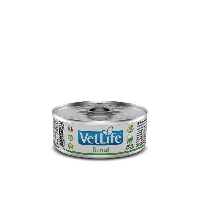 Farmina Vet Life Cat Renal Caja 12X85GrInsuficiencia renal crónica o temporal; coadyuvante para el tratamiento de la insuficiencia cardiaca congestiva.Farmina Vet Life Renal es un alimento dietético completo formulado para el soporte de la función renal en gatos con insuficiencia renal temporal o crónica. Presenta bajas concentraciones de fósforo y moderado contenido en proteínas, pero proteínas de muy alta calidad.
