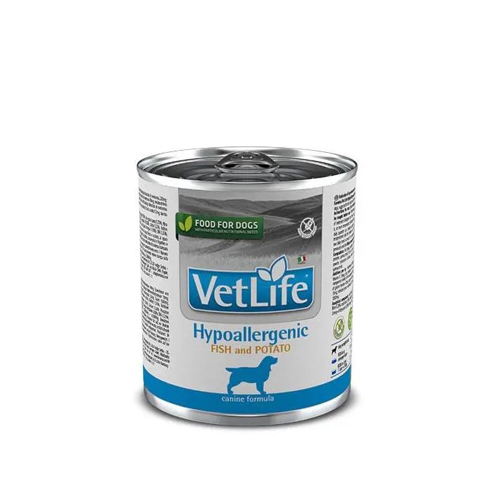 Farmina Vet Life Dog Hypoallergeni Trucha Caja 6X300GrReducción de la aparición de reacciones adversas a los alimentos.Farmina Vet Life Hypoallergenic Fish & Potato es un alimento dietético completo formulado para la reducción de la intolerancia alimentaria en perros. También se recomienda como coadyuvante en el soporte de la función trófica de la piel y de sus apéndices: ojos, oídos, sacos anales.