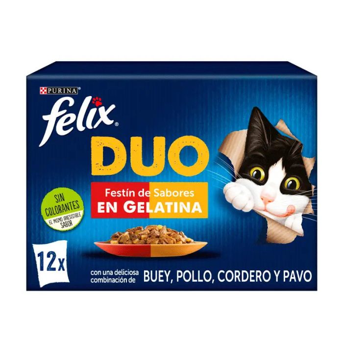Felix Fantastic Duo Delicious Carne 12X85Gr, comida húmeda para gatos