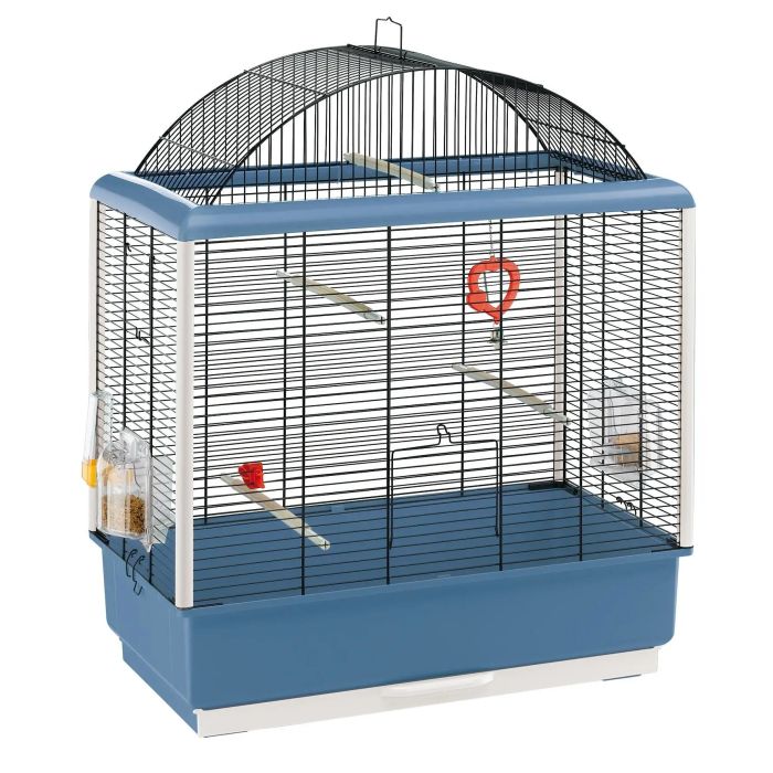 Palladio es ideal para canarios y pequeñas aves exóticas y ofrece un diseño limpio, lineal, refinado con un techo panorámico particularmente grande y malla de alambre barnizado, es una reminiscencia de las cúpulas construidas por un famoso arquitecto italiano. Se vende con un útil kit de montaje que ahorra en espacio. Disponible en 3 tamaños: Palladio 3, Palladio 4 y Palladio 5. Dentro de las Palladio, usted encontrará algunos accesorios imprescindibles como alimentadores Brava giratorios, un bebedero, perchas con goma extensibles, un clip para verduras y un lindo espejo en forma de corazón con una campanita. El modelo más grande es la Palladio 5, que también incluye un columpio plástico para Canarios.Todas las jaulas pueden utilizarse con un fuerte soporte plástico o soportes metálicos más modernos como los de la gama Sumet.Hay una conveniente bandeja extraíble en la parte inferior de cada jaula, para facilitar la limpieza (la jaula más grande tiene dos bandejas).