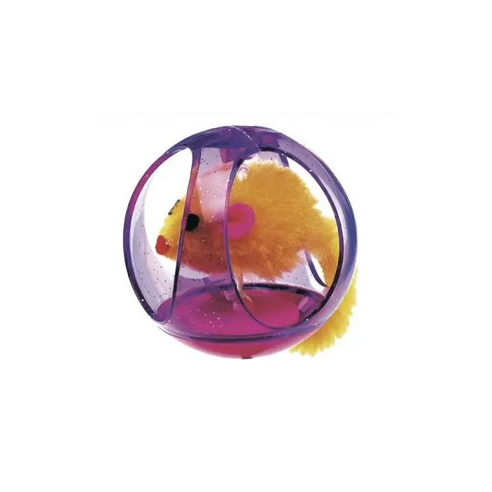 Rueda como una pelota: este juguete para gatos tiene un animal de felpa dentro! Hecho de resistente plástico transparente, este juguete para gatos presenta aberturas en los lados para que puedas ver el ratón dentro, aumentando la curiosidad que sentirá tu gato por este juguete.