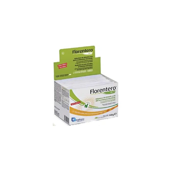 Florentero ® es un producto simbiótico optimizado con un complejo vitamínico.Componentes principales:Fructo-oligosacáridos; Mano-oligosacáridos; enterococo faecium; vitaminas Indicaciones:Florentero® está recomendado como apoyo nutricional para favorecer la salud y el equilibrio intestinal. Florentero ® ayuda a restablecer el buen funcionamiento del tubo digestivo debido a trastornos producidos por: diarreas, trastornos de la motilidad, estrés alimentario y climático, aumento de esfuerzo o preparación para competiciones, cambios de estación, tratamientos médicos, intoxicaciones alimentarias y empobrecimiento orgánico por parásitos y enfermedades infecciosas del aparato digestivo.Modalidad de empleo:Administrar la dosis diaria en dos porciones, una por la mañana y otra por la noche (directamente en la boca del animal o mezclada con la comida) según el peso corporal:Gatos:1 pastilla al díaPerros:0-7 kg 1 comprimido al día7-14 kg 2 comprimidos al día14-21 kg 3 comprimidos al día21-35 kg 4 comprimidos al día>35 kg 5-6 comprimidos al díaLa administración debe durar al menos de 7 a 10 días y puede extenderse según las indicaciones de su veterinario. Presentación:pastillas apeteciblesPaquete de 120 pastillas