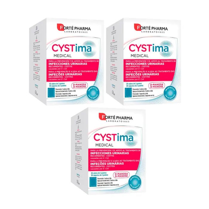 Cystima Medical es un producto sanitario y su uso está destinado a la prevención y el apoyo al tratamiento de infecciones urinarias recurrentes del tracto urinario (infecciones de la vejiga o cistitis) causadas por E. coli. Cysima Medical es una fórmula a base de D-manosa, un ingrediente de origen natural.La D-manosa se encuentra presente en estado natural en el metabolismo humano. Se fija en las bacterias E. coli y les impide adherirse a las paredes del tracto urinario. Las bacterias pueden entonces ser fácilmente eliminadas del organismo durante la micción.