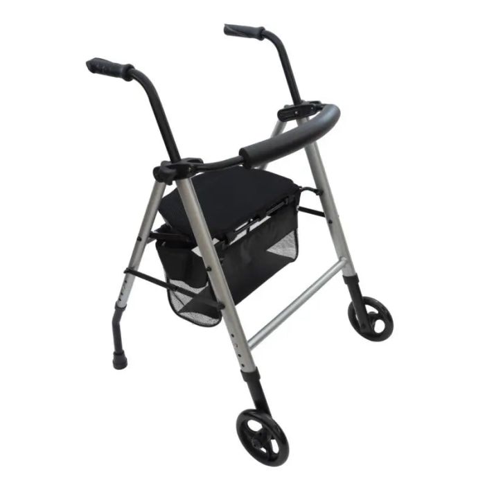 Andador de aluminio con ruedas delanteras y asiento regulable, práctico y