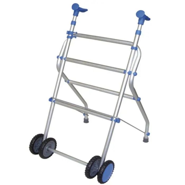 Este andador de aluminio con ruedas ofrece mucha estabilidad al caminar. Deben
