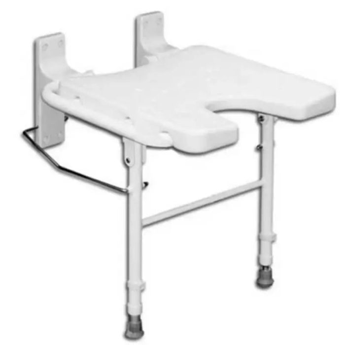 Asiento de ducha en U abatible con patas, cómodo y práctico.