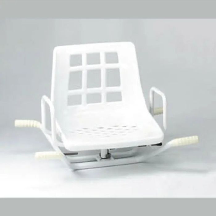 Características: Rotación: 360 º y bloqueo en 4 posiciones. Material: asiento y respaldo de polietileno Su instalación y fijación es sobre las paredes de la bañera y con unas tuercas que ejercen presión sobre ellas hacen que se mantengan fijas Dimensiones: Asiento: 44 cm de ancho x 40cm de profundo Ancho exterior: 71 cm. Ancho interior: 49 cm Profundidad: 54 cm Peso Neto: 5,9 kg Peso máximo soportado: 120 Kg Precauciones de uso: No use el asiento de baño si usted no es capaz de controlar su equilibrio al sentarse; Sólo usar el asiento cuando esté en perfecto estado y bien colocado; En ningún caso utilizar la silla de baño si falta alguna de las conteras; No se incline demasiado hacia delante cuando está sentado en el asiento de baño giratorio.