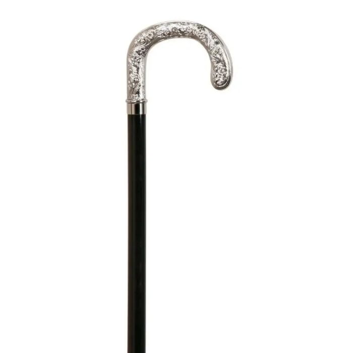 Bastón con puño de níquel grabado. Ofrece apoyo y un diseño refinado para