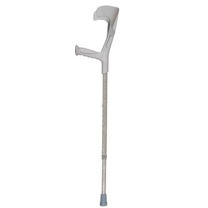 Sus características son las siguientes: Fabricado en aluminio y empuñaduras de tacto blando (TPR) Regulable en altura: 85 -100 cm Medida plegado: 55 cm Peso máximo: 100 kg Diámetro de la contera: 19 mm. Referencia de la contera: 81519 Se suministran por PARES Disponible en negro y diferentes diseños Código HERA-CV: EMS 000A-508 Código SIRPO: E0006737 Los bastones ingleses forman parte del grupo de los productos de apoyo que se utilizan en situaciones de enfermedad en las que el paciente requiere una descarga de uno de los miembros inferiores, una mayor base de sustentación y una deambulación más segura. Salvo en excepciones o porque la prescripción facultativa indique lo contrario, cuando se usa sólo un bastón inglés, éste deberá llevarse en el lado contrario de la lesión. De esta manera, el paciente se apoyará mejor al descargar con mayor eficacia la extremidad afectada. Para conseguir una marcha más segura el paciente debe tener una buena capacidad muscular y un buen equilibrio del tronco. La regulación de la altura se realizará de manera que la abrazadera del antebrazo no bloquee la articulación del codo. Para ello se situará en la parte posteroproximal del antebrazo a una distancia aproximada de 5 cm de la articulación del codo. Existe gran variedad de bastones ingleses: integrales, con codera abatible, puño anatómico… Debemos comprobar el estado de la contera con frecuencia, puesto que una vez el caucho empieza a desgastarse, aumenta el riesgo de caída y el bastón pierde adherencia y, por tanto, estabilidad.