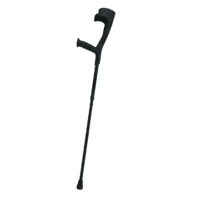 Sus características son las siguientes: Fabricado en aluminio y empuñaduras de tacto blando (TPR) Regulable en altura: 85 -100 cm Medida plegado: 55 cm Peso máximo: 100 kg Diámetro de la contera: 19 mm. Referencia de la contera: 81519 Se suministran por PARES Disponible en negro y diferentes diseños Código HERA-CV: EMS 000A-508 Código SIRPO: E0006737 Los bastones ingleses forman parte del grupo de los productos de apoyo que se utilizan en situaciones de enfermedad en las que el paciente requiere una descarga de uno de los miembros inferiores, una mayor base de sustentación y una deambulación más segura. Salvo en excepciones o porque la prescripción facultativa indique lo contrario, cuando se usa sólo un bastón inglés, éste deberá llevarse en el lado contrario de la lesión. De esta manera, el paciente se apoyará mejor al descargar con mayor eficacia la extremidad afectada. Para conseguir una marcha más segura el paciente debe tener una buena capacidad muscular y un buen equilibrio del tronco. La regulación de la altura se realizará de manera que la abrazadera del antebrazo no bloquee la articulación del codo. Para ello se situará en la parte posteroproximal del antebrazo a una distancia aproximada de 5 cm de la articulación del codo. Existe gran variedad de bastones ingleses: integrales, con codera abatible, puño anatómico… Debemos comprobar el estado de la contera con frecuencia, puesto que una vez el caucho empieza a desgastarse, aumenta el riesgo de caída y el bastón pierde adherencia y, por tanto, estabilidad.