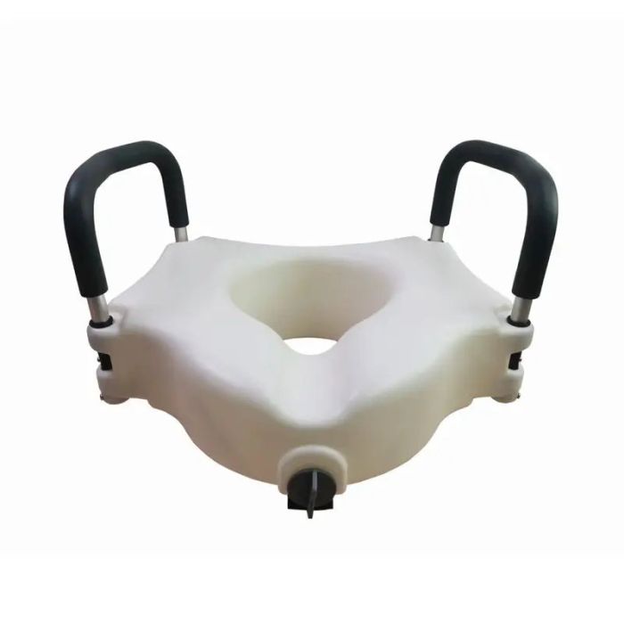 Elevador de WC con brazos, ofrece apoyo y estabilidad adicionales.