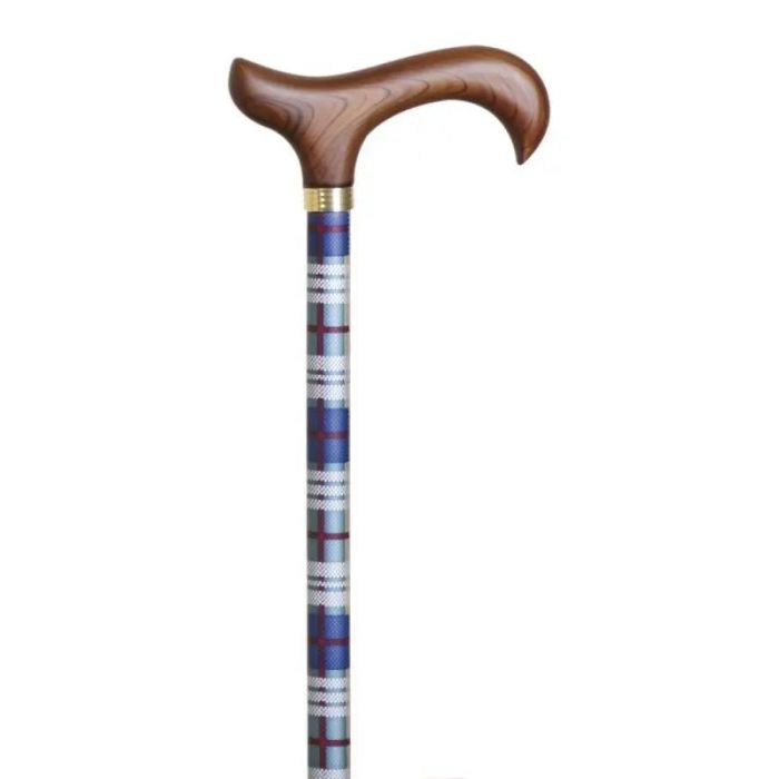 Los bastones están indicados para ser empleados por personas que tienen déficits funcionales en una o ambas extremidades inferiores provocados por patologías como la artritis y la artrosis o enfermedades neurológicas. El uso del bastón permite que el usuario pueda mantener independencia para desplazarse y ayuda a tener una buena calidad de vida, dinámica y activa. Existen muchas clases de bastones. Se fabrican con diferentes materiales, como la madera y el aluminio. Además, encontramos multitud de diseños que permiten a las personas elegir aquel que se ajusta más a su estilo, lo que aporta un valor añadido, sin que el bastón vea afectada su función principal de proporcionar equilibrio y alivio. Para que el bastón cumpla con su finalidad es necesario hacer un buen uso del mismo. Para ello, es necesario tener en cuenta lo siguiente: El agarre de la empuñadura del bastón debe ser el adecuado. El usuario debe sentir comodidad y seguridad en el apoyo de la mano, eligiendo la empuñadura que se adapte mejor a sus necesidades La medida debe abarcar desde la muñeca hasta el suelo en posición vertical. Dicho de otra manera, la altura óptima es la existente desde el trocánter mayor al suelo. Además, debemos comprobar el estado del punto de apoyo con frecuencia, puesto que una vez el caucho empieza a desgastarse, aumento el riesgo de caída y el bastón pierde adherencia y, por tanto, estabilidad. Esta muletilla extensible está fabricada en aluminio. El tubo está estampado con cuadrados de varios colores y la empuñadura es de madera. Sus características principales son las siguientes: Material tubo: aluminio Material empuñadura: madera Longitud: 76-99 cm Diámetro del primer tubo 19 mm Diámetro del segundo tubo 16 mm Peso:0,300 Kg Peso máximo: 90 kg Diámetro de la contera: 14 mm. Referencias: 825/826
