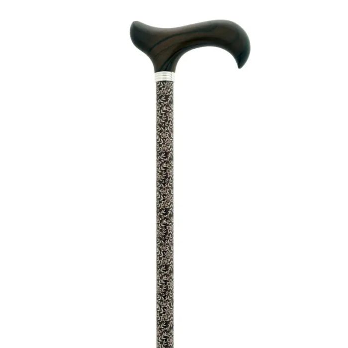Muletilla extensible de aluminio. El tubo tiene un fondo marrón con estampado de