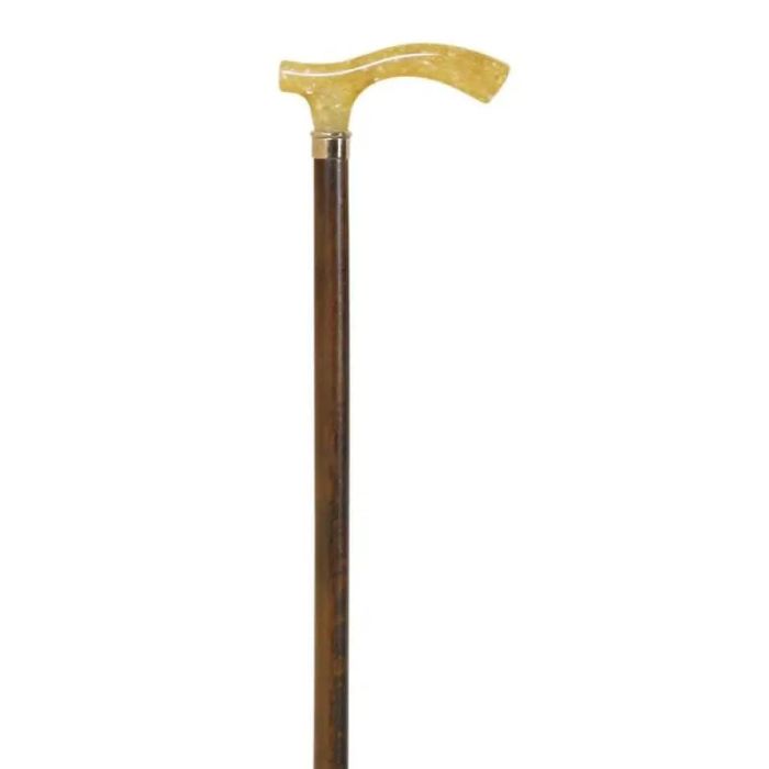 Muletilla de haya marrón, con puño de metacrilato dorado, diseño atractivo y