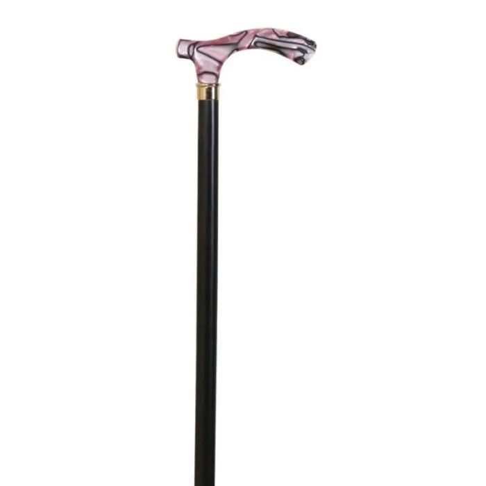 Muletilla de haya negra, con puño de metacrilato rosa y negro, elegante y
