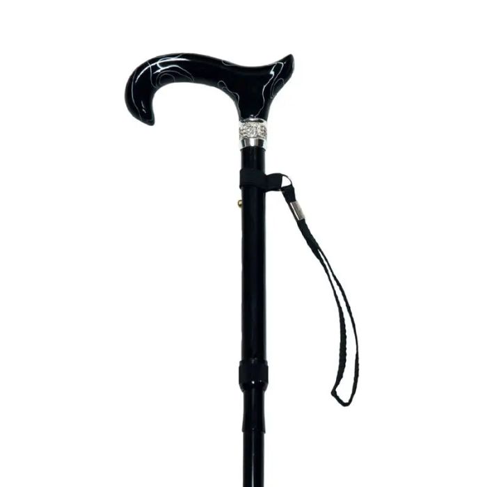 Muletilla plegable con cristales, color negro, elegante y moderna.