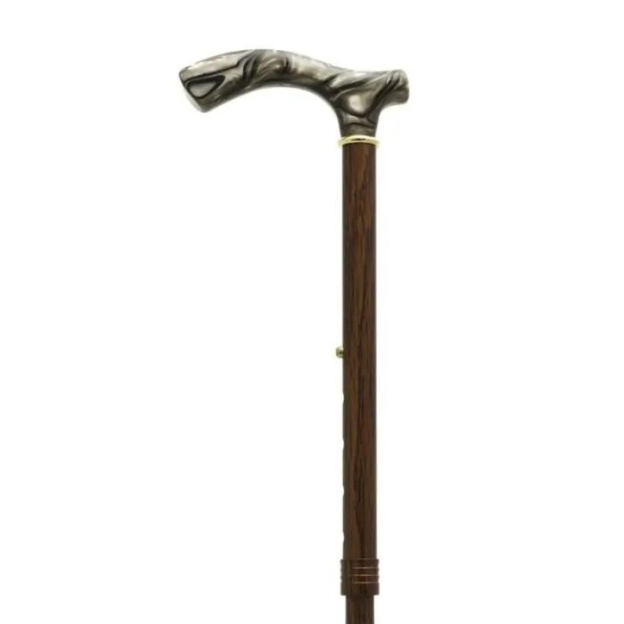 Muletilla plegable con imitación madera, empuñadura de metacrilato, elegante.