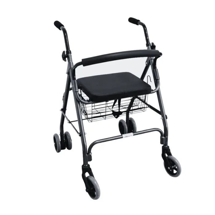 Rollator de aluminio con frenos por presión, color negro, seguro y cómodo,