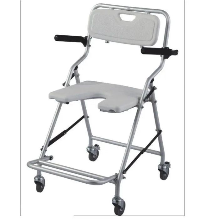 Silla de baño plegable con ruedas es un producto de apoyo para el aseo. Facilita