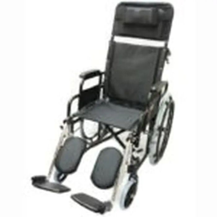 Silla de ruedas reclinable que ofrece múltiples posiciones para mayor comodidad.