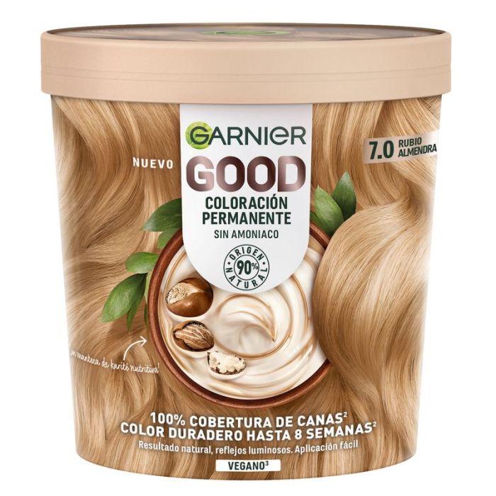 Garnier Good Coloración Permanente Sin Amoniaco, 90% Origen Natural Tono 7.0Rubio Almendra.