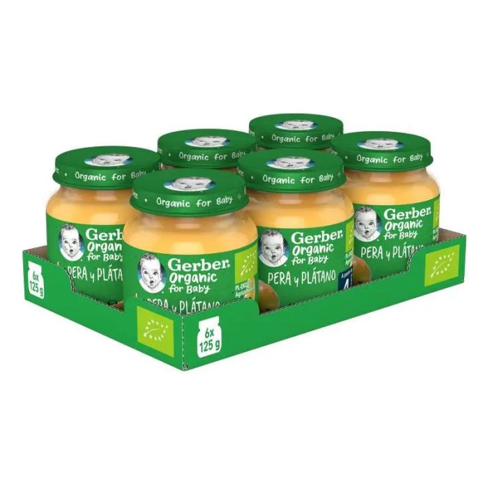 GERBER Pack Tarritos De Orgánico Pera Platano , 125g x 6 unidades