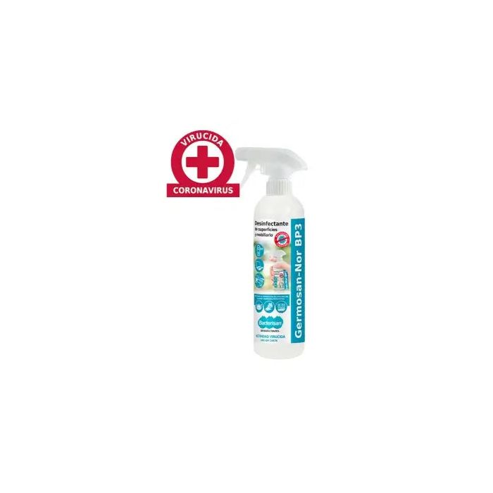 Desinfectante Germosan NOR BP3 750mlDesinfectante en spray para evitar la propagación de gérmenes y bacterias. Sirve en todo tipo de superficies, no es corrosivo y tampoco deja manchas.Actividad bactericida UNE-en 1500Fungicida UNE-EN 1650Virucida UNE-EN 14476En base armonio cuaternario de uso puroRegistro HA. Apto para productos alimenticios y ganaderoRegistro en la Agencia Española del Medicamento