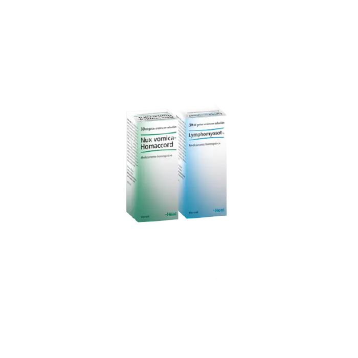 tratamiento del linfoenema y Nux Vomica Homacord, que favorece la digestión y