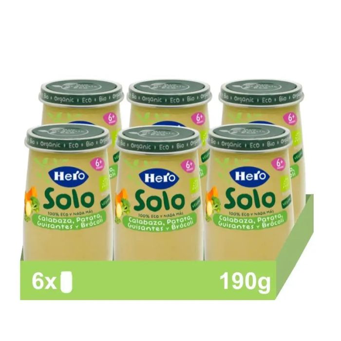 Hero Baby Pack Tarrito Eco Solo Calabaza, Patata, Guisantes Y Brócoli, 6 X 190gr