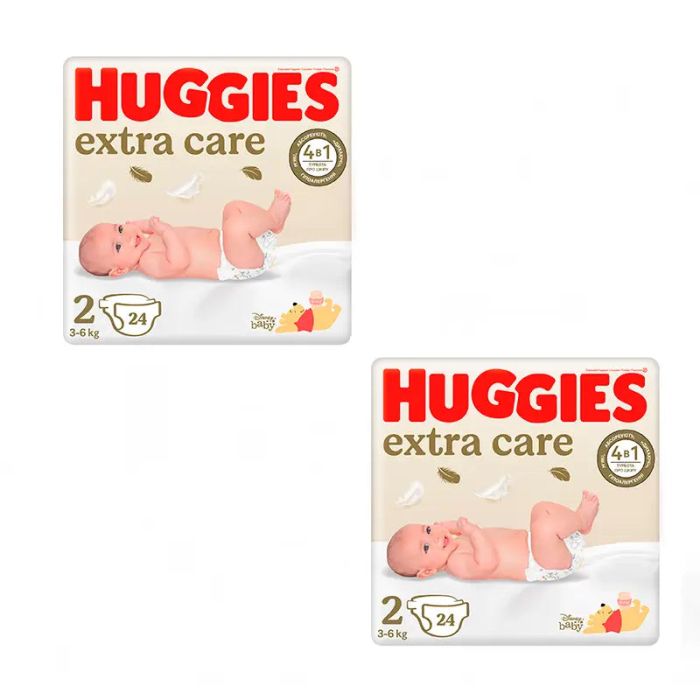 Huggies Pack 2X Pañal Extra Care Talla 2 (4-6Kg), 48 Unidades