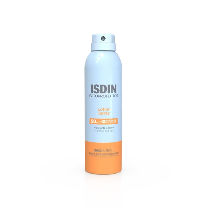 Los ingredientes de ISDIN Fotoprotector Lotion Spray SPF50 son: Aqua (Water), Isobutane, Dibutyl Adipate, Homosalate, Isododecane, Butyl Methoxydibenzoylmethane, Alcohol Denat., Ethylhexyl Salicylate, Octocrylene, Butylene Glycol, Nylon-12, PEG-30 Dipolyhydroxystearate, Diisopropyl Sebacate, Dimethicone, PEG-10 Dimethicone, Sodium Chloride, Butane, Ethylhexyl Triazone, Propane, Phenoxyethanol, Disteardimonium Hectorite, Panthenol, Tocopheryl Acetate, Glyceryl Stearate, Parfum (Fragrance), Propylene Carbonate, Disodium EDTA, Ethylhexylglycerin, PEG-8, Tocopherol, Ascorbyl Palmitate, Ascorbic Acid, Citric Acid.