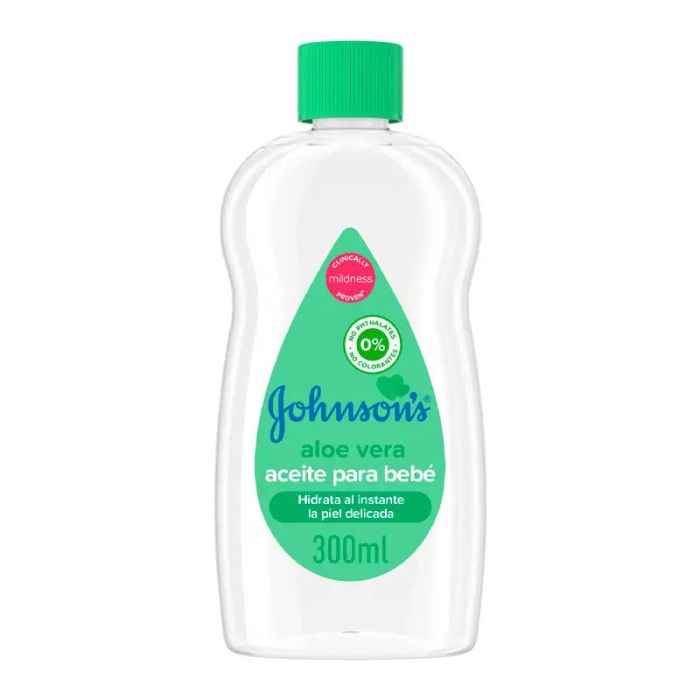 Aceite Aloe Vera de Johnson's Baby, es un aceite con fórmula hipoalergénica de alta tolerabilidad cutánea, enriquecido con aloe vera que hidrata hasta 10 veces más, en la piel mojada que muchas lociones en la piel seca.