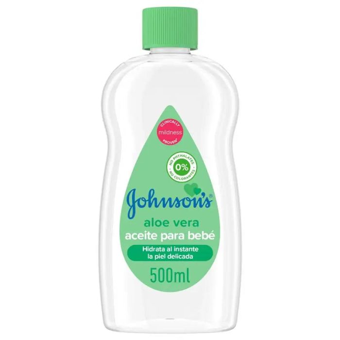 Aceite Aloe Vera de Johnson's Baby, es un aceite con fórmula hipoalergénica de alta tolerabilidad cutánea, enriquecido con aloe vera que hidrata hasta 10 veces más, en la piel mojada que muchas lociones en la piel seca.