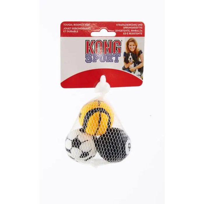 Las KONG Sport Balls son mejores que una pelota de tenis. Estos juguetes, hechos con paredes de caucho muy gruesas, son lo suficientemente resistentes como para aguantar juegos intensos de buscar y recoger.Al lanzarlas el perro se vuelve loco con estas resistentes pelotas saltarinas.- Más resistentes y seguras que una pelota de tenis- Con mucho más rebote para complicar los juegos de buscar y recoger- Sin chirriador- Tamaños: Pequeño (paquete de tres), mediano (paquete de tres) y grande (paquete de dos)