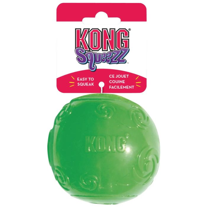 El KONG Squeezz Ball tiene un chirriador oculto que ofrece el chirrido más seguro y divertido de todos los juguetes del mercado. Fantástico para juegos de buscar y recoger, el bote irregular y el chirrido garantizan horas de diversión para usted y su perro.