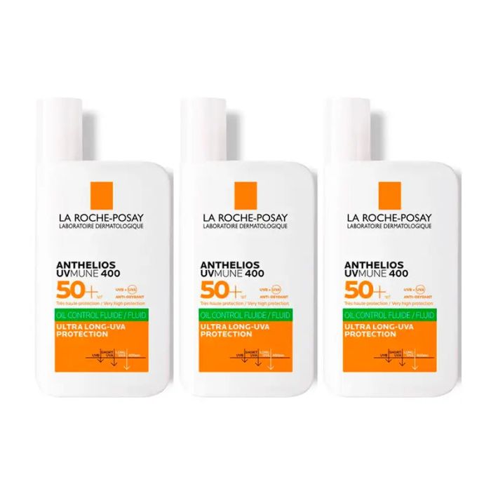 La Roche Posay Triplo Anthelios Uv-Mune 400 Oil Control Fluido Invisible Spf50+Sin Color, 3 X 50 Ml