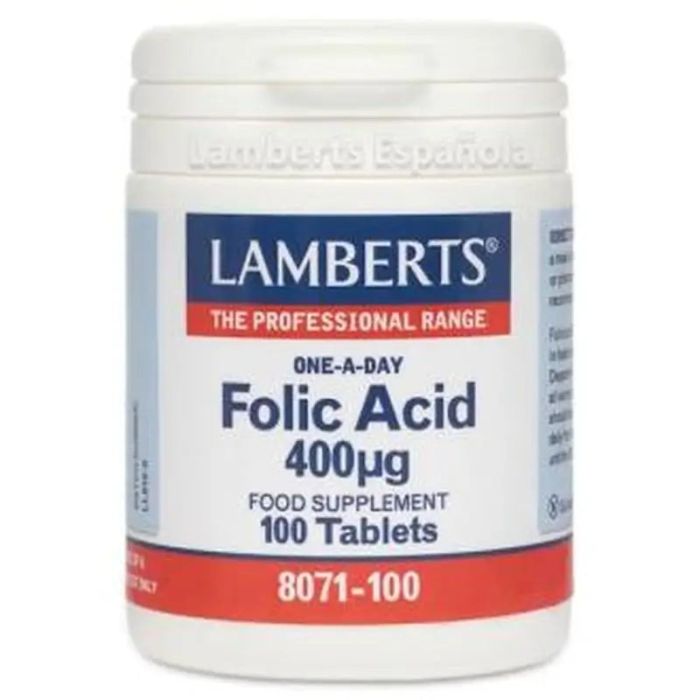 Lamberts Acido Folico 400 Mcg. es un suplemento vitamínico que contiene 100
