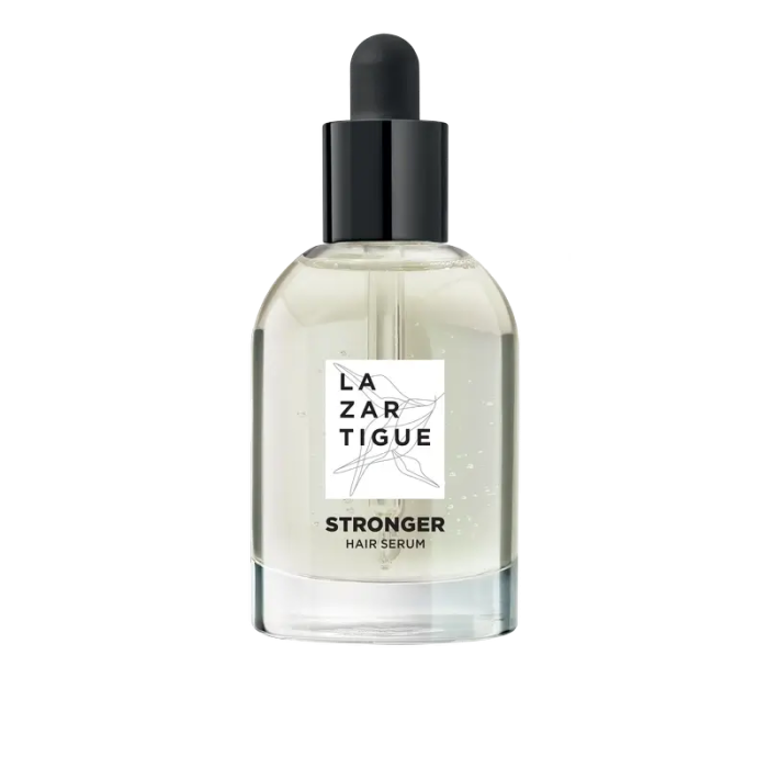 Este sérum vegano compuesto por un 93% de ingredientes naturales, lucha contra la caída reaccional del cabello provocada por ciertas situaciones puntuales. Enriquecido con CapixylTH, un complejo con extracto de trébol rojo y NeutrazenTH, un neurocosmético calmante antiestrés, estimula el crecimiento más fuerte del cabello. El cabello tiene un ciclo de vida de 2 a 6 años y se renueva a lo largo de la vida. Por lo tanto, es normal perder entre 100 y 200 por día, dependiendo de las estaciones. Por encima de estos niveles, la caída es anormal y debe abordarse con cuidado y adaptada a cada caso. Si se pierde el cabello de forma masiva y repentina después de un evento en particular, como estrés, fatiga, embarazo o enfermedad, la caída se llama reaccional. La deficiencia ocasional de microcirculación en el cuero cabelludo a menudo junto con la deficiencia de nutrientes debilita el anclaje y la fibra del cabello que cae. Empiezas a observar más cabello en la almohada, en la ducha, en el cepillo mientras te peinas ... Solo un tratamiento específico enriquecido con vitaminas puede retrasar la caída al estimular el cuero cabelludo y al mismo tiempo darle al cabello debilitado la ingesta nutritiva que necesita para crecer saludablemente Para frenar la reacción de pérdida de cabello, el sérum Stronger de Lazartigue contiene dos complejos botánicos inéditos y 100% veganos. Extraído del trébol rojo, CapixylTH actúa directamente sobre las células madre de los nuevos folículos capilares para aumentar su tamaño y así fortalecer su anclaje. NeutrazenTH penetra en el cuero cabelludo de manera óptima y alivia el cuero cabelludo gracias a sus propiedades antiinflamatorias. Trata la hipersensibilidad del cuero cabelludo responsable de la caída durante los períodos de estrés, desequilibrio hormonal o cambio estacional. El cabello se vuelve más fuerte y más resistente, la caída se ralentiza.