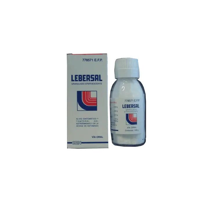 Cada 100 g de Lebersal contiene: Bicarbonato sódico 12,50 g, Fosfato disódico anhidro 8,40 g, Sulfato sódico anhidro 3,15 g, Sulfato magnésico desecado 1,05 g.