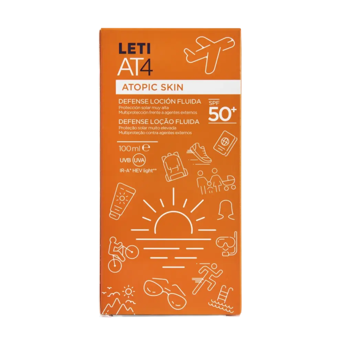 Leti At4 Defense Loción Fluida es una loción corporal hidratante y protectora
