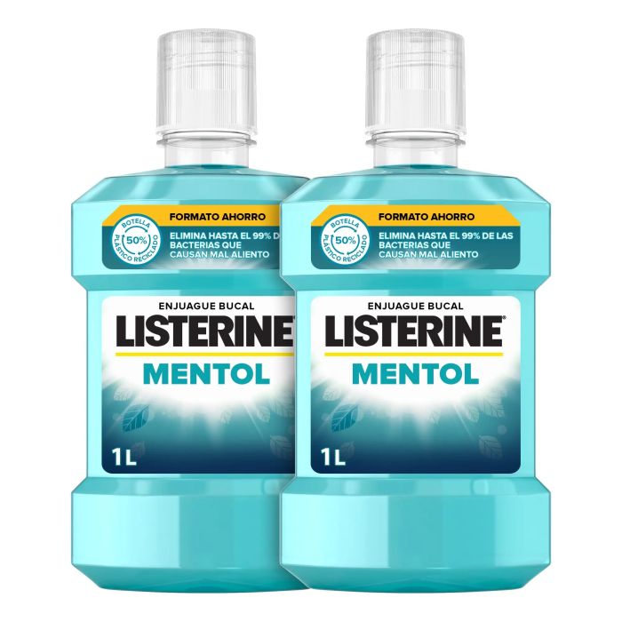 Listerine Enjuague Bucal Sabor Mentol Protección contra Placa, Fortalece losdientes, Pack de 2 x 1000ml.