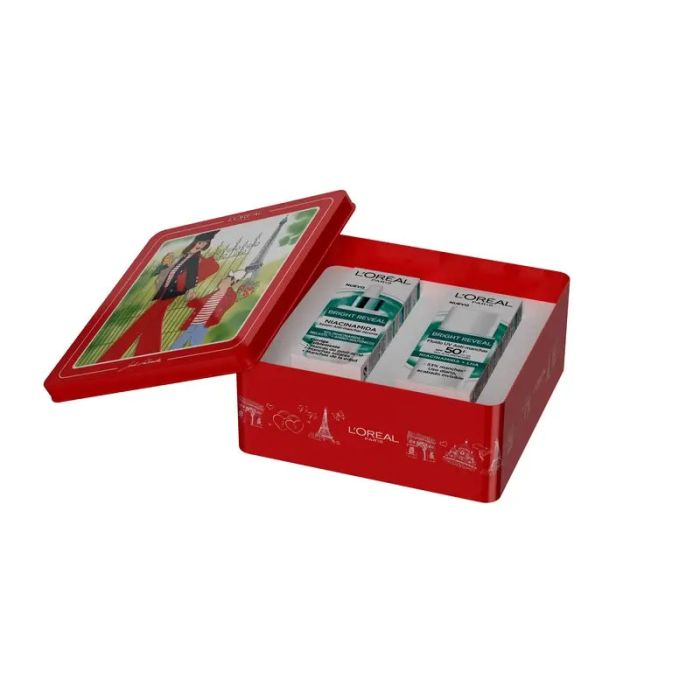 Transforma tu rutina Anti-manchas con el cofre de L’Oréal Paris Bright Reveal que contiene: - Sérum Anti-Manchas Bright Reveal con Niacinamida de L'Oréal Paris: Este sérum presenta una fórmula innovadora con un 10% de Niacinamida + Melasyl + Amino-sulfónico, elementos esenciales para desafiar las manchas oscuras persistentes. Con una eficacia comprobada, este serum se convierte en tu aliado para hacer reducir visiblemente las marcas de post-acné, manchas solares, incluyendo las manchas de la edad. La poderosa combinación de Niacinamida trabaja para revelar una piel radiante y uniforme, reduciendo las manchas oscuras que puedan afectar a su luminosidad. - Bright Reveal Fluido Hidratante Anti-manchas: Despierta la luminosidad de tu piel con este fluido con Filtro UV SPF50+ y Niacinamida de L'Oréal Paris. Este innovador Fluido diario, de muy alta protección solar, protege, ayuda a prevenir y corrige visiblemente las manchas. Con su fórmula avanzada con Niacinamida, las manchas oscuras se difuminan visiblemente, transformando tu piel y dejándola con un aspecto más uniforme y joven.
