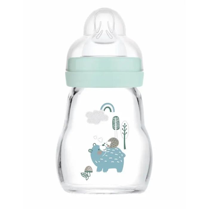 Mam Baby Biberón Cristal Feel Good Azul Mate, 170Ml