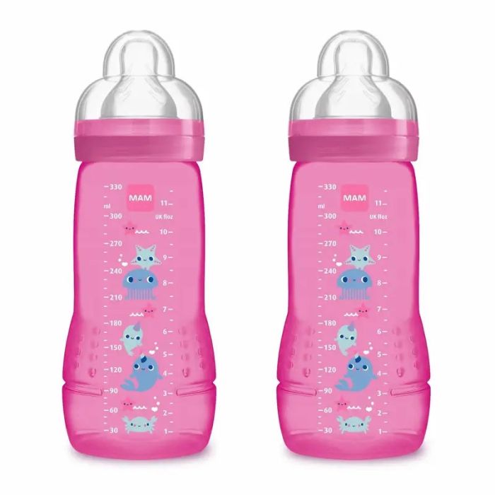 Mam Baby Biberón Easy Active Rosa Brillante, 2X330Ml