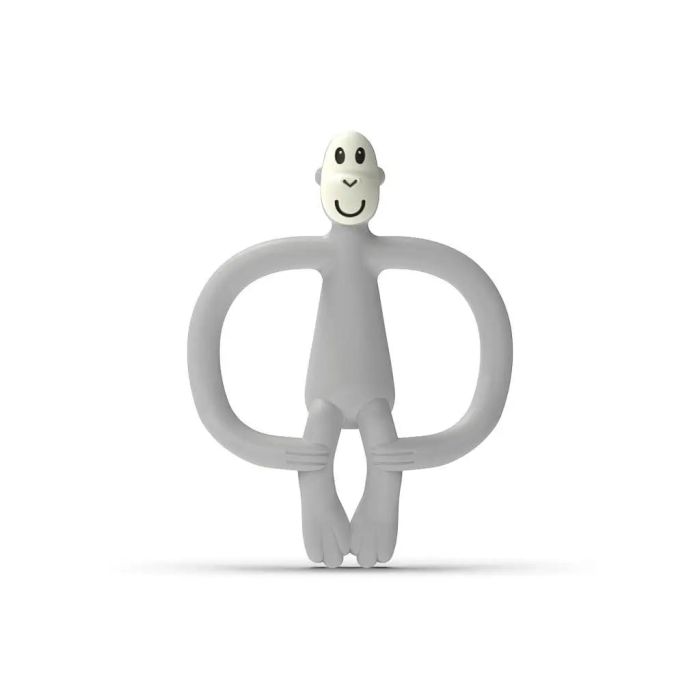 Mono Sin Cola Mordedor Gris Claro es un producto elaborado con silicona alimentaria, con un bonito diseño en forma de mono que ayuda a calmar el dolor y las molestias en las encías de los bebés en proceso de dentición. Este mordedor es suave, flexible y seguro. Tiene una tecnología anti microbiana BioCote que evita la proliferación de gérmenes. Los puntitos en la parte trasera de la cabeza del mono permiten actuar sobre la zona del dolor.