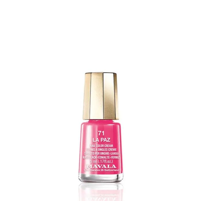Aplicar dos capas finas de esmalte de Mavala Color La Paz en las uñas, después de haber aplicado una base protectora. Acabar la manicura con un fijador.